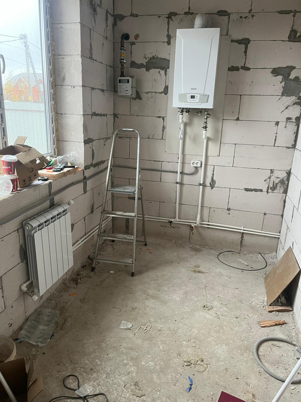 монтаж настенного котла,